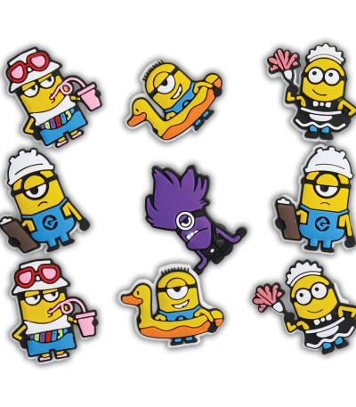 جیبیتز مینیون – بسته 9 عددی .شامل مجموعهای از جیبیتزهای سیلیکونی فانتزی است که با هدف تزئین انواع کفش کراکس، دمپایی، کیف و پوشاک عرضه میشود. این کالکشن با طرحهای متنوع، رنگهای چشمنواز و طراحی بامزه، محصولات این مجموعه با تمرکز بر سلیقه کودکان، نوجوانان و حتی بزرگسالان طراحی شدهاند